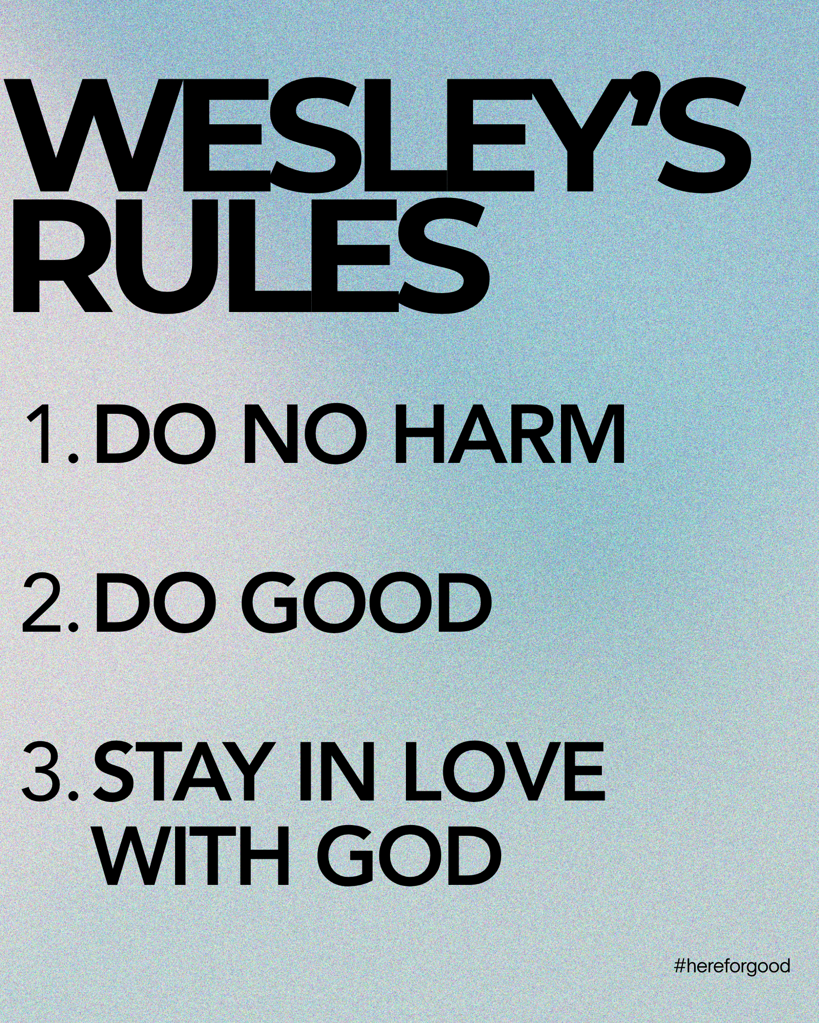 The 3 Simple Rules, which are rooted in our Methodist heritage, give us guidance. These rules are (1) do no harm, (2) do good, (3) stay in love with God. These Words to Build A Life On are a great place to start your journey. Here is how: